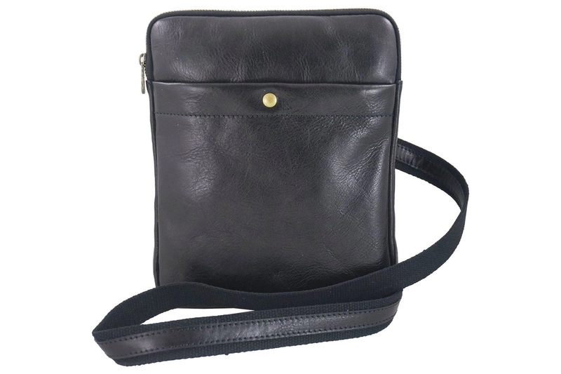 Modna męska torba skórzana z regulowanym paskiem - Czarna