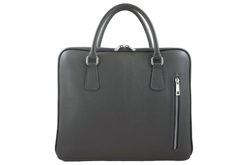 Wnętrze torby: jednokomorowe wnętrze jest wykończone podszewką. Wewnątrz znajduje się mała zasuwana kieszonka mieszcząca kosmetyki lub portfel oraz szeroka kieszeń zapinana na rzep mieszcząca dokumenty, notes / kalendarz oraz notatki. Skórzana torba na laptopa casual posiada ograniczniki z tkaniny zapobiegające wypadaniu rzeczy znajdujących się w środku. Jest zasuwana na całej długości (od podstawy do podstawy torby), posiada srebrne okucia, dwa wygodne uchwyty bez regulacji (dł. 40cm, wys. 13cm) oraz dodatkowy pasek na ramię z regulacją (maksymalna dł. 130cm, maksymalna wys. 65cm). Na zewnątrz znajduje się pionowa zasuwana kieszeń, wyróżniająca ten model, umożliwiająca szybki dostęp do kluczy lub telefonu.