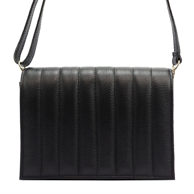 Torebka wyróżnia się pikowanym wzorem na skórzanej powierzchni, który nadaje jej elegancji i subtelnego charakteru. Wykonana ze skóry naturalnej na zewnątrz, z materiałową podszewką w środku, gwarantuje trwałość i komfort użytkowania. Złote okucia oraz zapięcie w formie klapy na magnes dodają jej luksusowego wyglądu, idealnie komponując się z klasycznym stylem, który pasuje na każdą okazję.