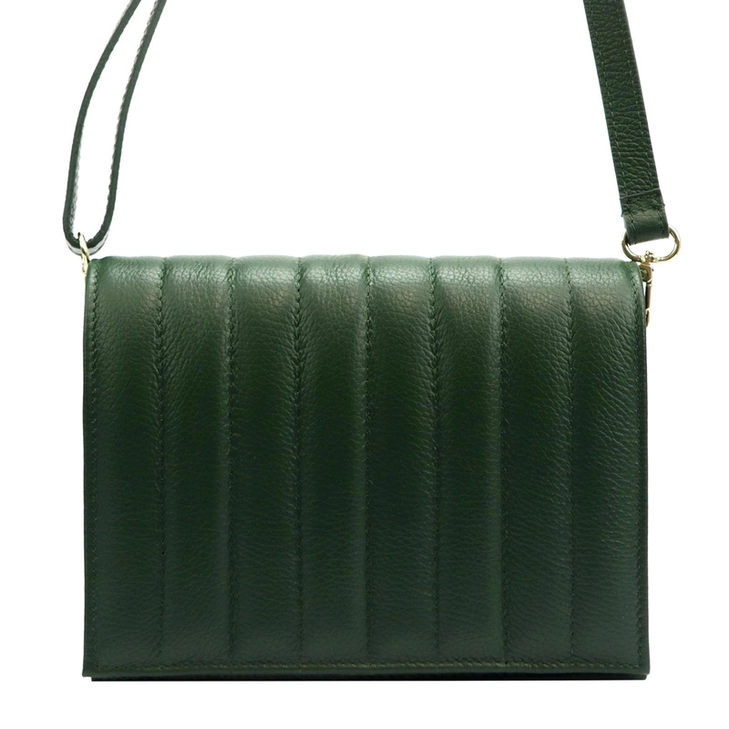Torebka wyróżnia się pikowanym wzorem na skórzanej powierzchni, który nadaje jej elegancji i subtelnego charakteru. Wykonana ze skóry naturalnej na zewnątrz, z materiałową podszewką w środku, gwarantuje trwałość i komfort użytkowania. Złote okucia oraz zapięcie w formie klapy na magnes dodają jej luksusowego wyglądu, idealnie komponując się z klasycznym stylem, który pasuje na każdą okazję.
