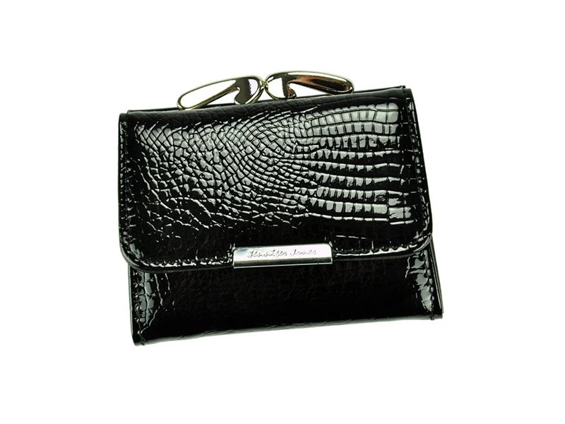 Wyrazisty, a przy tym uroczy, mały portfel o fasonie portmonetki, wyprodukowany przez markę Jennifer Jones. Wzorowe i solidne wykonanie z najlepszej jakości skóry naturalnej lakierowanej o wyjątkowej fakturze z motywem skóry węża, krokodyla.