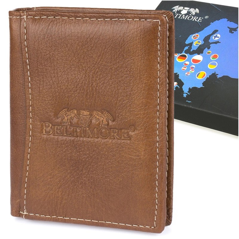 Elegancki męski portfel wykonany z wysokiej jakości skóry naturalnej vintage w brązowym kolorze, marki Beltimore z dodatkowym zabezpieczeniem RFiD.