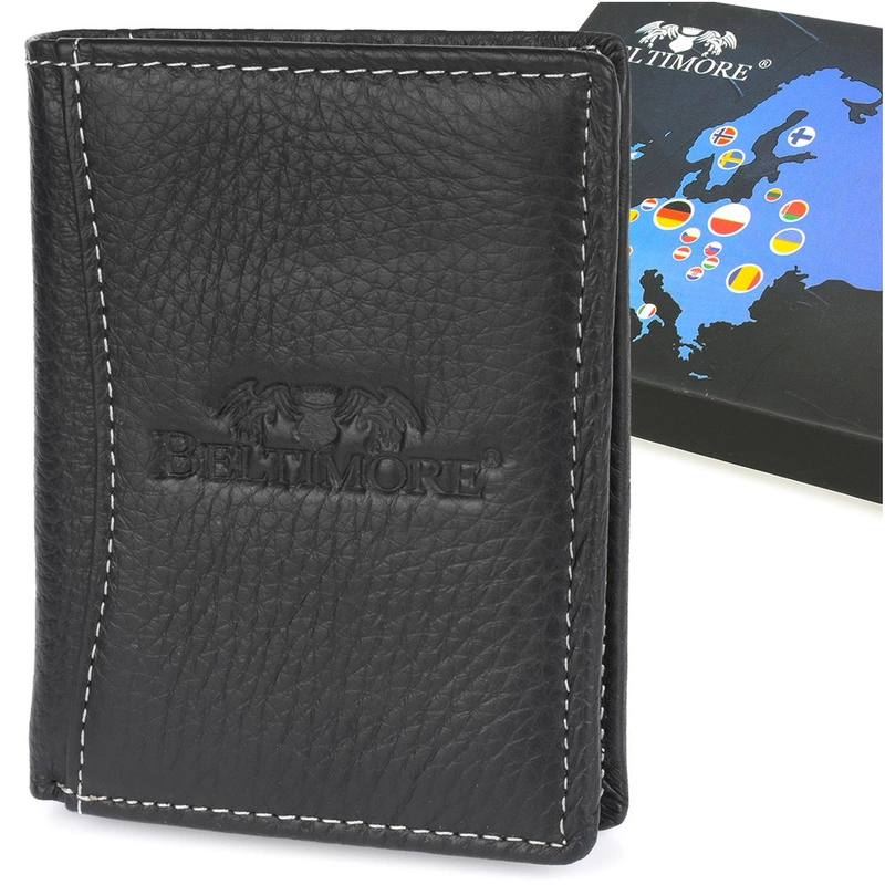Elegancki męski portfel wykonany z wysokiej jakości skóry naturalnej vintage w czarnym kolorze, marki Beltimore z dodatkowym zabezpieczeniem RFiD.