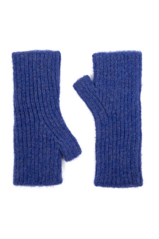 Krótkie, jednokolorowe mitenki o ściągaczowym splocie.