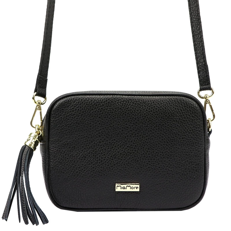 MiaMore Skórzana zgrabna damska listonoszka torebka z brelokiem frędzlem