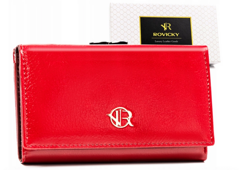 - Jeśli szukasz połączenia klasyki i wygody, ten duży portfel Rovicky spełni Twoje oczekiwania. Zaprojektowany w poziomej orientacji, wyróżnia się eleganckim fasonem typu portmonetka, wykonanym ze skóry naturalnej w połączeniu z wysokiej jakości ekoskórą.