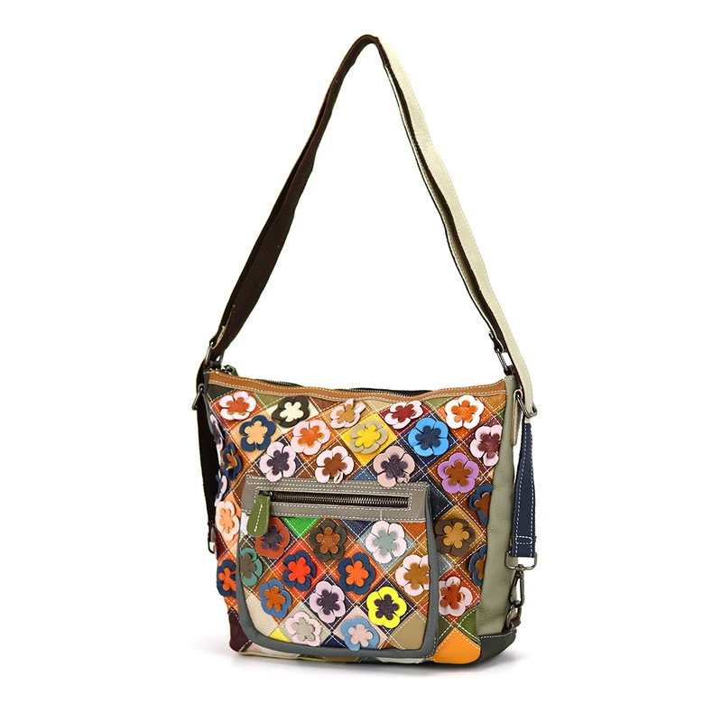 Damska kolorowa listonoszka skórzana wzór mozaika