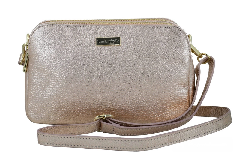 Damska torebka metalizowana w kolorze różowym pudrowym została wykonana ze skóry naturalnej licowej. Klasyczny fason, złote okucia oraz modna metalizowana skóra naturalna wyróżnia ten model listonoszki, która podkreśli stylizacje na wyjątkowe okazje. Dostępna w najnowszej kolekcji damska torebka metalizowana trzykomorowa będzie idealna dla osób, którym zależy na pojemnych i jednocześnie stylowych torebkach ze skóry naturalnej. O charakterze stylizacji przesądza nie tylko fason produktu, ale przede wszystkim jego kolor lub wyróżniające się wykończenie skóry naturalnej - w tym modelu jest to modna skóra metaliczna. Dzięki klasycznemu i stonowanemu wzornictwu błyszcząca torebka wyróżni Twój outfit na każdej uroczystości lub spotkaniu ze znajomymi. Zapoznaj się z najnowszą ofertą torebek skórzanych dostępnych w naszym sklepie - listonoszek, klasycznych lub wygodnych plecaków oraz portfeli. Oferujemy duży wybór produktów galanterii skórzanej Dla Niej i Dla Niego.