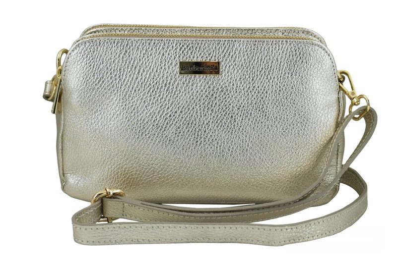 Damska torebka metalizowana w kolorze złotym została wykonana ze skóry naturalnej licowej. Klasyczny fason, złote okucia oraz modna metalizowana skóra naturalna wyróżnia ten model listonoszki, która podkreśli stylizacje na wyjątkowe okazje. Dostępna w najnowszej kolekcji damska torebka metalizowana trzykomorowa będzie idealna dla osób, którym zależy na pojemnych i jednocześnie stylowych torebkach ze skóry naturalnej. O charakterze stylizacji przesądza nie tylko fason produktu, ale przede wszystkim jego kolor lub wyróżniające się wykończenie skóry naturalnej - w tym modelu jest to modna skóra metaliczna. Dzięki klasycznemu i stonowanemu wzornictwu błyszcząca torebka wyróżni Twój outfit na każdej uroczystości lub spotkaniu ze znajomymi. Zapoznaj się z najnowszą ofertą torebek skórzanych dostępnych w naszym sklepie - listonoszek, klasycznych lub wygodnych plecaków oraz portfeli. Oferujemy duży wybór produktów galanterii skórzanej Dla Niej i Dla Niego.