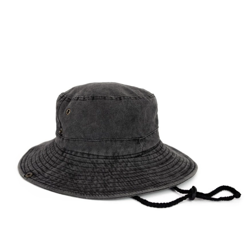 Wiosenny i letni kapelusz bucket safari z dużym rondem i sznurkiem.