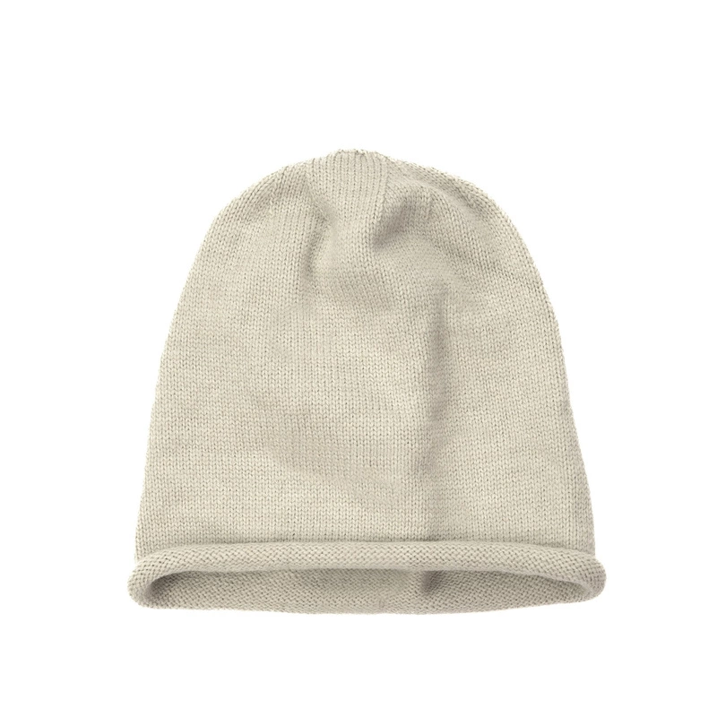 Czapka ozdobiona jest grubym splotem i wywijanym ściągaczem.
