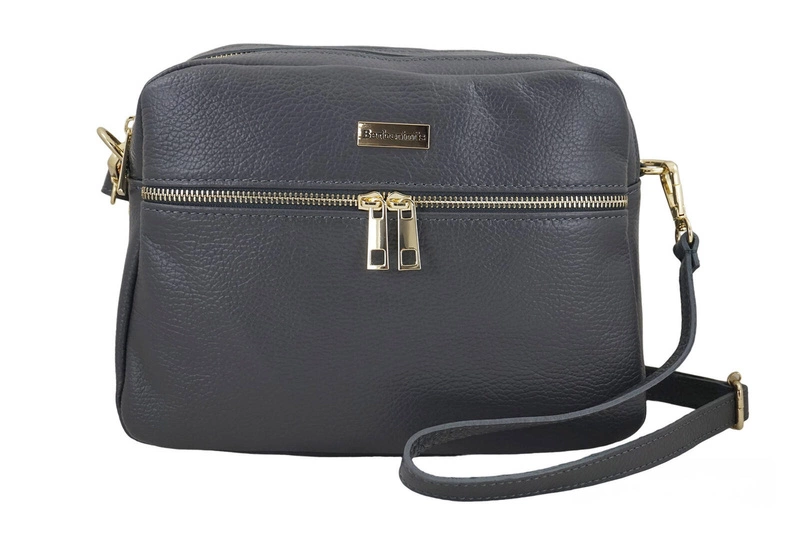 Pojemna torebka skórzana dwukomorowa w kolorze szarym ciemnym została wykonana ze skóry naturalnej licowej. W ofercie naszego sklepu znajdziesz wiele modeli funkcjonalnych torebek listonoszek, na długim regulowanym pasku, w szerokiej palecie kolorów, z delikatnymi złotymi lub srebrnymi ozdobami. Wszystkie harmonijnie dopełnią kobiecy look, stanowiąc jego praktyczny dodatek. Klasyczny fason torebki z dużą pojemną zasuwaną kieszenią oraz złote okucia wyróżniają ten model listonoszki, która podkreśli codzienne swobodne stylizacje do pracy, na zakupy, spacer lub krótki wyjazd. Dostępna w najnowszej kolekcji, w szerokiej palecie kolorów, pojemna torebka skórzana dwukomorowa będzie idealna dla osób, którym zależy na stylowych i jednocześnie funkcjonalnych torebkach ze skóry naturalnej. Dzięki klasycznemu i stonowanemu wzornictwu dopasujesz torebkę zarówno do casualowych sukienek lub spodni dżinsowych. Zapoznaj się z najnowszą ofertą torebek skórzanych dostępnych w naszym sklepie - listonoszek, klasycznych lub wygodnych plecaków oraz portfeli. Oferujemy duży wybór produktów galanterii skórzanej Dla Niej i Dla Niego.