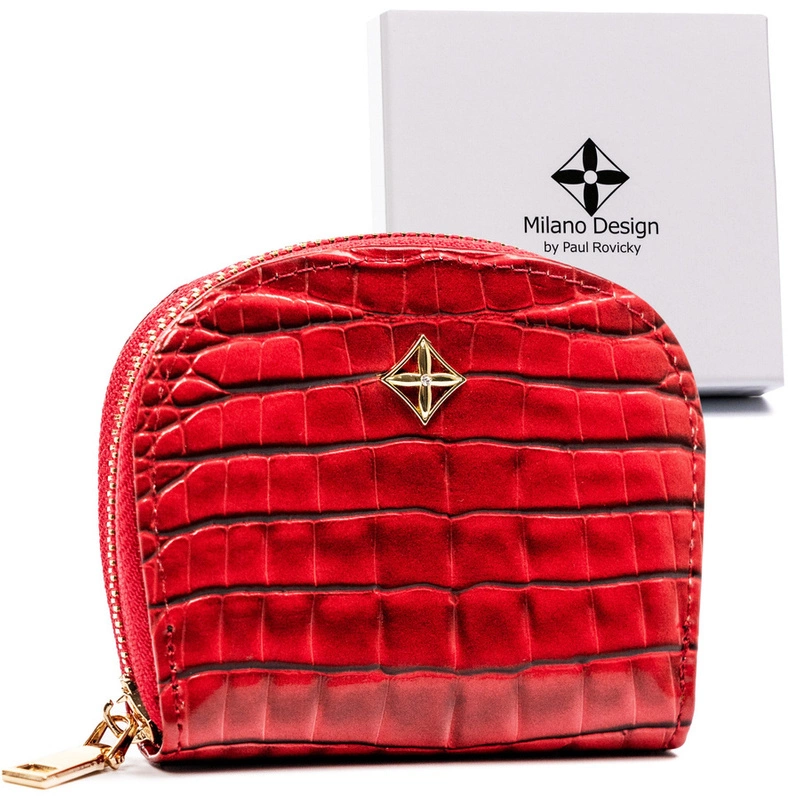• Portfel Milano Design to połączenie ponadczasowego designu i funkcjonalności, które spełni oczekiwania najbardziej wymagających kobiet. Wykonany z wysokogatunkowej skóry ekologicznej w fakturze skóry krokodyla, ten mały portfel przyciąga wzrok.