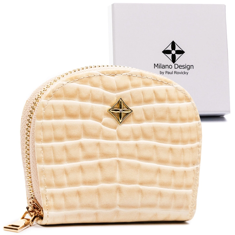 • Portfel Milano Design to połączenie ponadczasowego designu i funkcjonalności, które spełni oczekiwania najbardziej wymagających kobiet. Wykonany z wysokogatunkowej skóry ekologicznej w fakturze skóry krokodyla, ten mały portfel przyciąga wzrok.