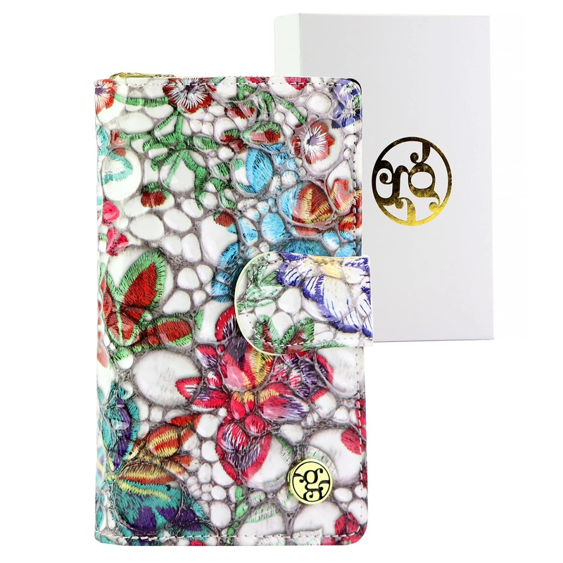 - Damska portmonetka z roślinnym wzorem. Oryginalna produkcja marki Gregorio. Portfel zapinany na zatrzask, co ułatwi użytkowanie w ciągu dnia. Wewnątrz dużo miejsca do przechowywania. Portfel zapakowany w oryginalna pudełko.