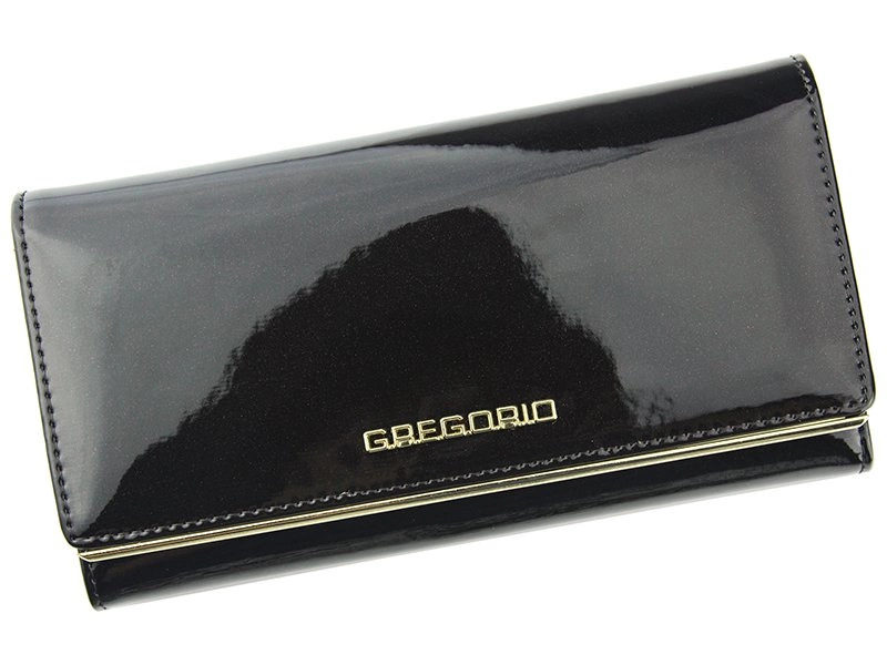 - Klasyczny, podłużny damski portfel od marki Gregorio. Kobiecy fason, który idealna wpisuje się w aktualne trendy. Wewnątrz, dużo miejsca do przechowywania. Portfel zamykany na zatrzask. Lakierowana faktura, podkreśla jego elegancję.