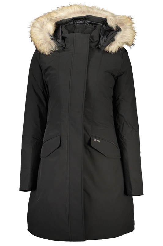 - DŁUGA KURTKA Z DŁUGIMI RĘKAWAMI, Z KAPTUREM I ODJMOWANYM FUTREM, 2 KIESZONKAMI, ZAMEK I GUZIKI, LOGO