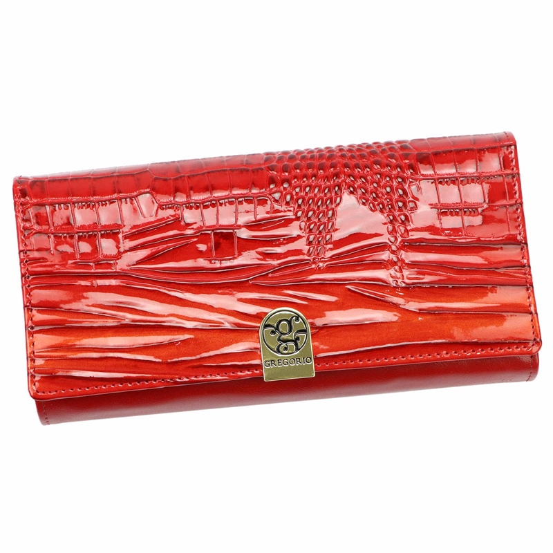 Marka Gregorio prezentuje portfel damski, który wyróżnia się nie tylko eleganckim designem, ale także wysoką jakością wykonania. Wykonany ze skóry naturalnej oraz ecoskóry, portfel ten ma modny wzór imitujący skórę krokodyla, podkreślając Twoją wyrafinowaną estetykę. Dodatkowo, złote okucia nadają mu subtelnego blasku.