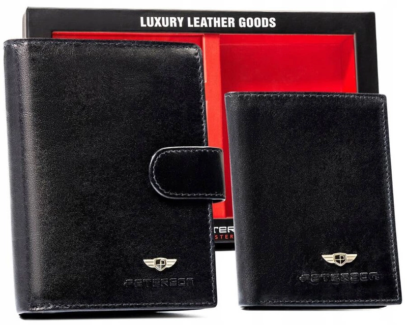 Zestaw prezentowy: skórzany portfel męski, etui na karty i brelok - Peterson