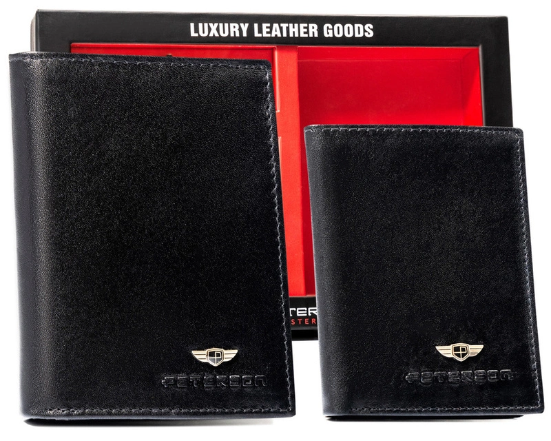 Zestaw prezentowy: skórzany portfel męski, etui na karty i brelok - Peterson