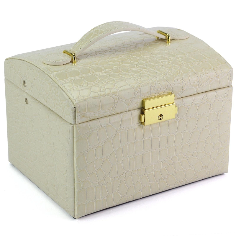 Patrizia prezentuje elegancki kuferek na biżuterię, zaprojektowany z dbałością o detale. Wykonany z ekologicznej skóry o fakturze skóry krokodyla, przyciąga wzrok luksusowym wyglądem i starannością wykończenia.