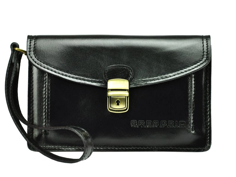 Wykonana z najwyższej jakości skóry naturalnej, saszetka Gregorio jest trwała i elegancka. Naturalna skóra jest nie tylko wytrzymała, ale również nabiera szlachetności z upływem czasu, co dodaje jej charakteru i unikalności. Eleganckie złote okucia dodają saszetce luksusowego wyglądu. Subtelnie kontrastują z ciemną skórą, nadając całości wyjątkowego blasku i klasy.