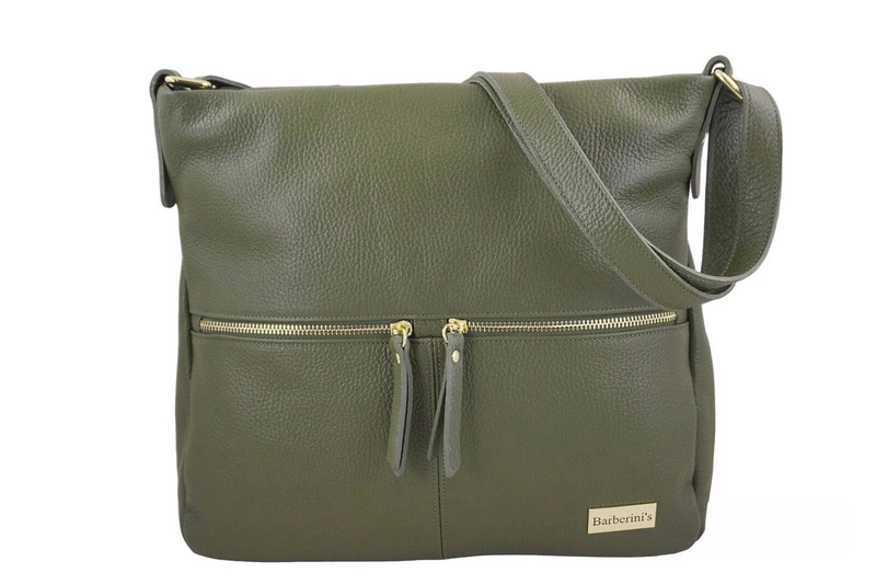 Duża klasyczna torba na ramię w kolorze zielonym została wykonana ze skóry licowej. Wygodny fason torebki sprawdzi się w codziennym użytkowaniu uzupełniając casualowe stylizacje do pracy. Oferowana w najnowszej kolekcji galanterii skórzanej duża klasyczna torba na ramię posiadająca dwie praktyczne kieszenie z przodu, które wyróżniają ten model, pomieści niezbędne przedmioty, które muszą się znaleźć w damskiej torebce - dokumenty, notatnik, portfel, klucze, telefon oraz kosmetyki. Oferujemy wiele modeli torebek klasycznych w stonowanych kolorach, z delikatnymi ozdobami, wykonanych z dbałością o szczegóły, z wysokiej jakości skóry naturalnej. Zapoznaj się z produktami skórzanymi dostępnymi w naszym sklepie, zapisz się do newslettera i odbierz rabat na pierwsze zakupy.