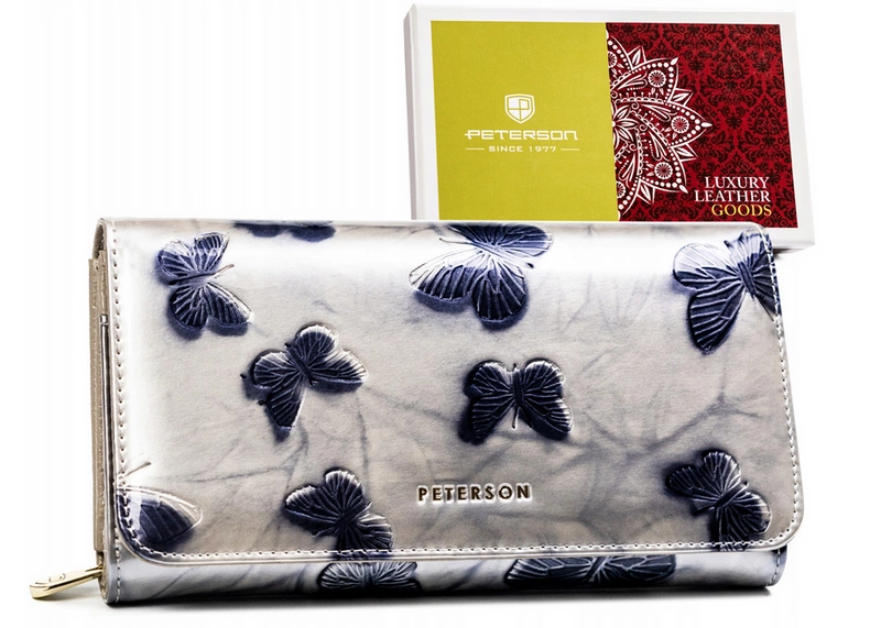 Skórzany damski portfel Peterson PTN 421077-BF SILVER