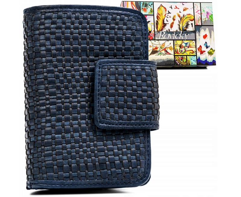 Wykonany z naturalnej skóry o atrakcyjnej, plecionej fakturze, portfel emanuje luksusowym wyglądem, który przyciąga wzrok. Skórzany materiał nie tylko dodaje mu elegancji, ale także zapewnia trwałość, dzięki czemu posłuży przez długi czas. Dodatkowo, każdy portfel jest starannie wykończony, co świadczy o dbałości marki Rovicky o detale.
