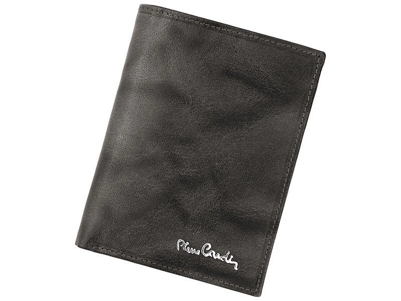 Oryginalny, nowoczesny męski portfel o rozbudowanym fasonie i pionowym układzie od Pierre Cardin. Wykonany z wysokogatunkowej skóry naturalnej. Pięknie i starannie wykończony. Na fakturze umieszczone zostało logo producenta.