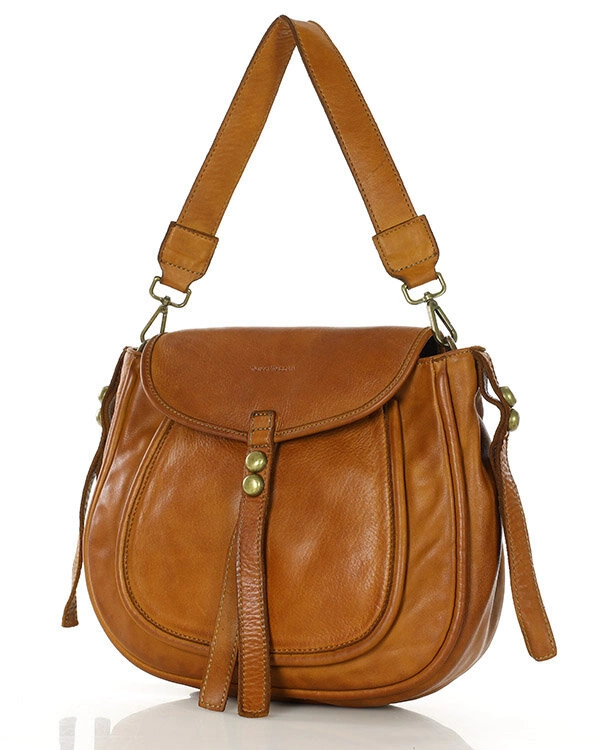 Marco Mazzini Torebka classic saddle bag ze skóry naturalnej na ramie brąz camel