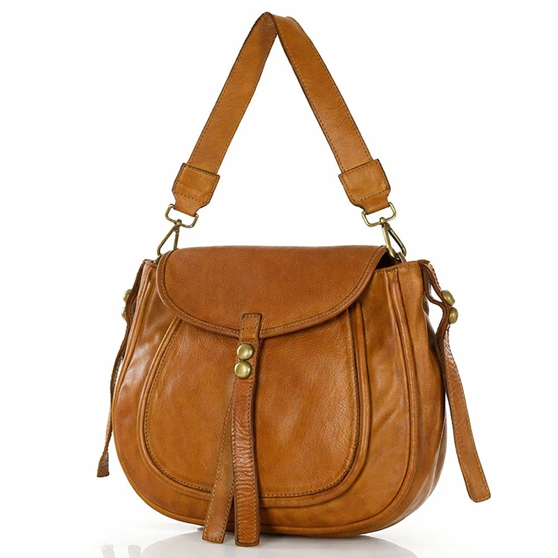 Mazzini Torebka classic saddle bag ze skóry naturalnej na ramie brąz camel