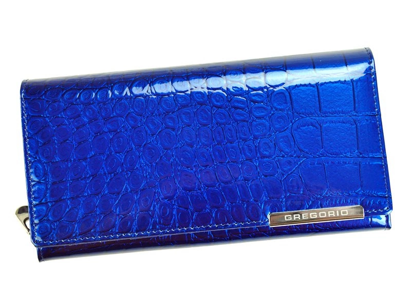 Efektowny, zgrabny portfel damski wykonany z wysokiej jakości lakierowanej skóry naturalnej o ciekawej fakturze imitującej skórę krokodyla. Delikatne logo na froncie dodaje całości uroku. Klasyczny, podłużny fason w poziomym układzie, który wiele pomieści. Portfel ten będzie stylowym dodatkiem w każdej kobiecej torebce.