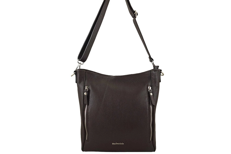 Praktyczna skórzana torebka na ramię - Brązowa ciemna