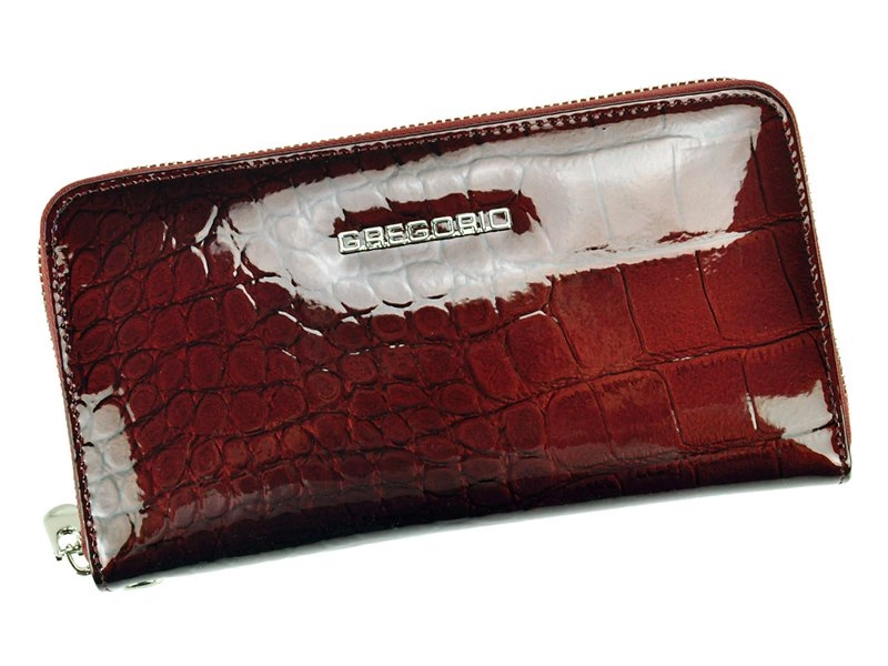 - Elegancki damski portfel od marki Gregorio. Oryginalna faktura ze wzorem w typie skóra krokodyla. Model zapinany na zamek błyskawiczny. Portfel zapakowany w oryginalne, logowane pudełko. Idealny dla nowoczesnych kobiet.