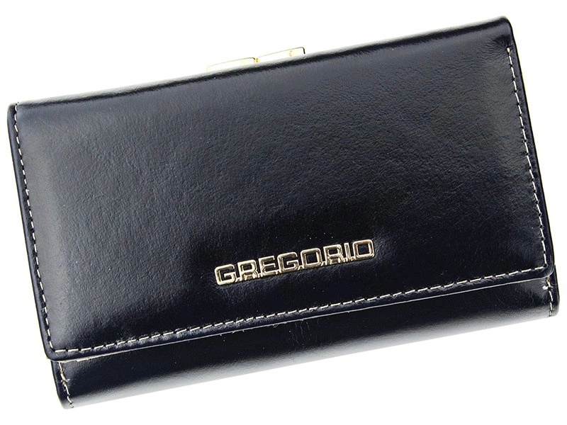 - Piękny i wyjątkowy portfel o gładkiej fakturze z widocznym logiem firmy Gregorio. Dodatkowo na pierwszy rzut oka widać staranne obszycie, które podkreśla klasyczny, a zarazem elegancki charakter. 14 przegródek dla kart i kieszeń na monety.