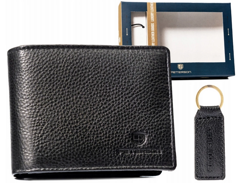 Zestaw prezentowy: mały, skórzany portfel męski i brelok - Peterson