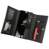 Portmonetka jest nie tylko piękna, ale i niezwykle praktyczna. Wnętrze oferuje 3 przestronne komory, które pomieszczą dokumenty i gotówkę, a dodatkowo wyposażona jest w 15 przegródek na karty, umożliwiających uporządkowanie kart płatniczych i lojalnościowych. Dwie przezroczyste przegrody idealnie sprawdzą się do przechowywania zdjęć lub ważnych dokumentów, które chcesz mieć zawsze pod ręką.