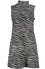 - KRÓTKA SUKIENKA BEZ RĘKAWÓW, WYSOKI SZYJNIK, KONTRASTOWE SZCZEGÓŁY, LOGO