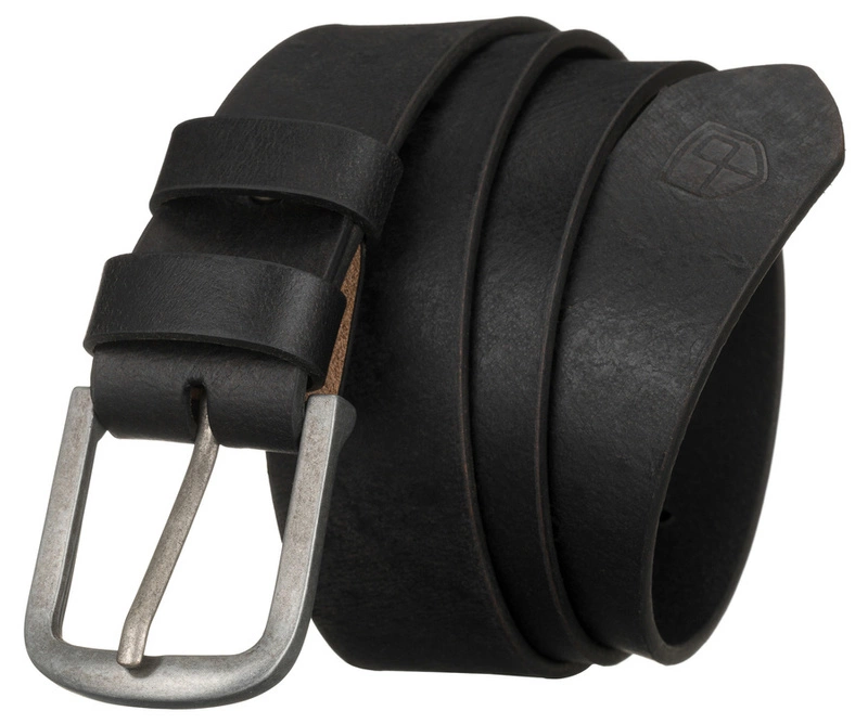 - Prawdziwie męski design | Pasek w klasyczny, czarnym kolorze. Zakończony jest srebrną klamrą, celowo zmatowioną, tak aby pasowała to surowej stylistyki, jaką się cechuje