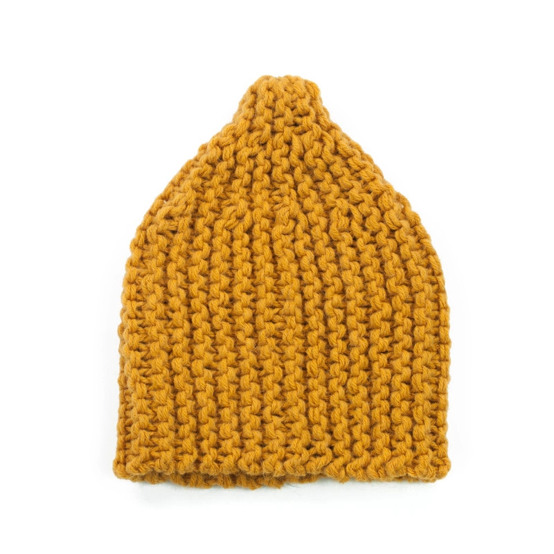 Długa, ciepła czapka ze szlachetnej włóczki.