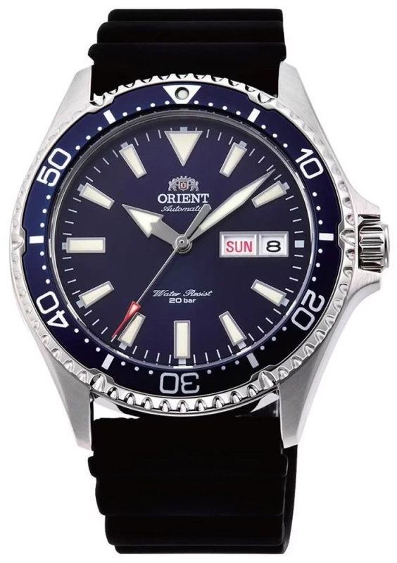 Zegarek Orient Orient Kano RA-AA0006L19B to klasyczny męski zegarek. Czasomierz działa w oparciu o niesłychanie dokładny japoński mechanizm z automatycznym naciągiem. Na granatowej tarczy chronionej mineralnym szkłem umieszczono datowniki