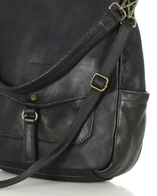 - Czarna torebka skórzana na ramię z kolekcji Marco Mazzini