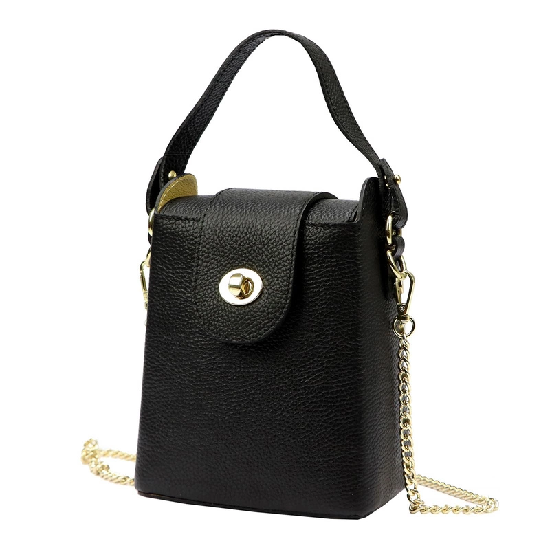 Vera Pelle Mini elegancka damska listonoszka z łańcuszkiem skóra naturalna