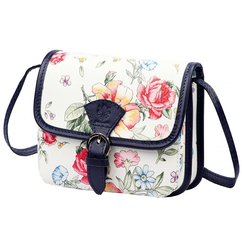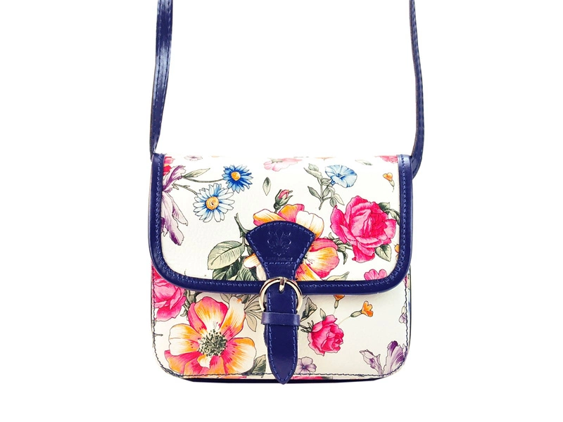 Skórzana damska listonoszka torebka przez ramię w kwiaty Gregorio