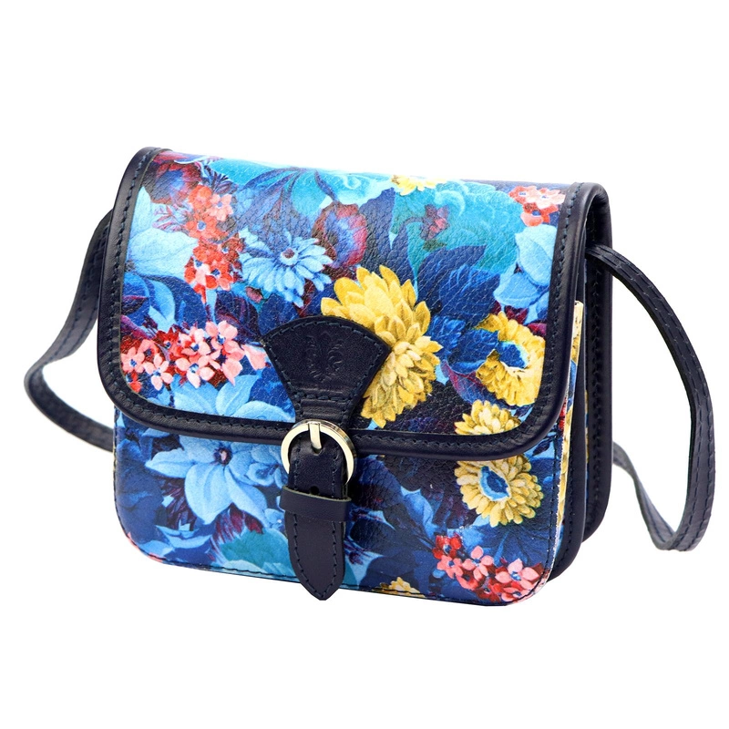 Skórzana damska listonoszka torebka przez ramię w kwiaty Gregorio