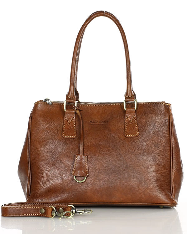Każda torebka która powstaje na terenie toskańskiej dzielnicy garbarskiej to arcydzieło rzemiosła, łączącego tradycję z najwyższą jakością wykonania. Torebka prezentuje się niezwykle elegancko, nadając Twojemu strojowi subtelny akcent luksusu. Wykonana z wysokiej jakości skóry naturalnej licowej bydlęcej – vegetable leather – garbowanej składnikami roślinnymi bez syntetycznych dodatków w Toskanii. Ten typ skóry to najwyższa JAKOŚĆ PREMIUM , która jest charakterystyczna dla wyrobów skórzanych, które powstają w najlepszych zakładach kaletniczych w Toskanii, na terenie toskańskiej dzielnicy garbarskiej. Skóra naturalna garbowana roślinnie starzeje się, ale nie ulega zniszczeniu. Taki proces garbarski gwarantuje wytrzymałość skóry oraz jej długowieczność. W trakcie użytkowania skóra nabiera szlachetnego wyglądu. Wszelkie niedoskonałości mechaniczne znikają same lub po przetarciu zwilżoną ściereczką bawełnianą.