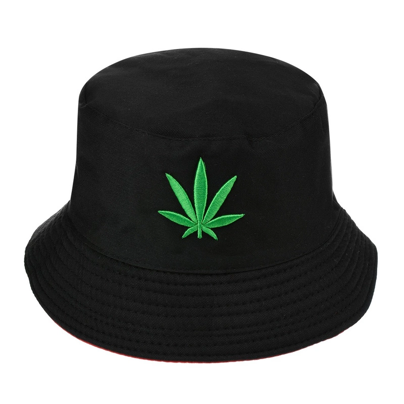 - jedna strona kapelusza jest czarna ze wzorem w zielony liść