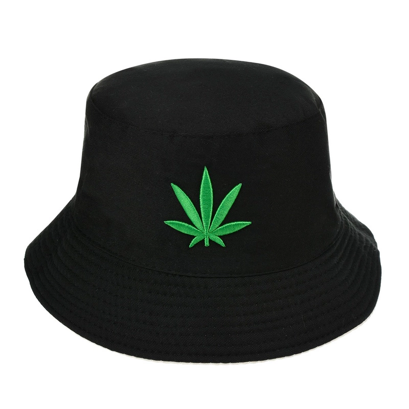 - jedna strona kapelusza jest czarna ze wzorem w zielony liść