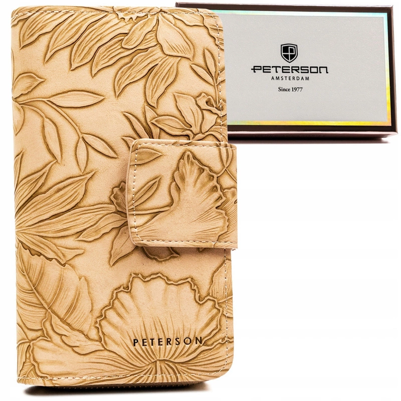 Duży portfel damski ze skóry ekologicznej zamykany na zatrzask i suwak - Peterson